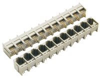 8P8C带LED六联体屏蔽网络插座,PCB插座