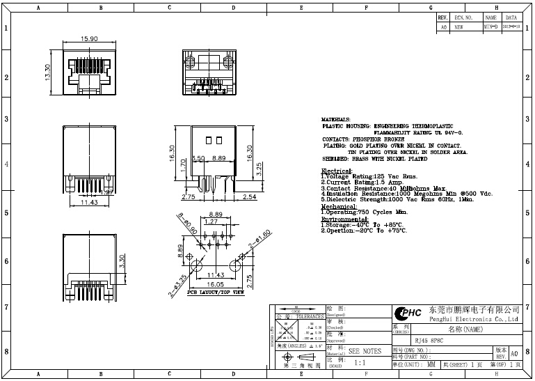 塑壳:玻璃纤维填充PBT(UL94V-0)